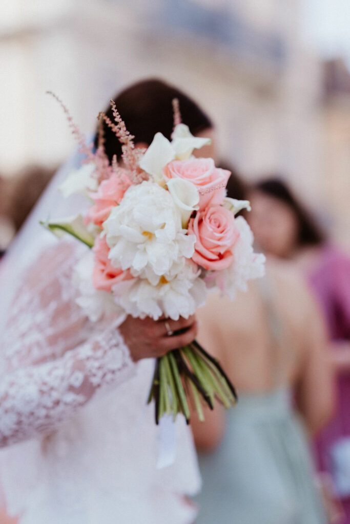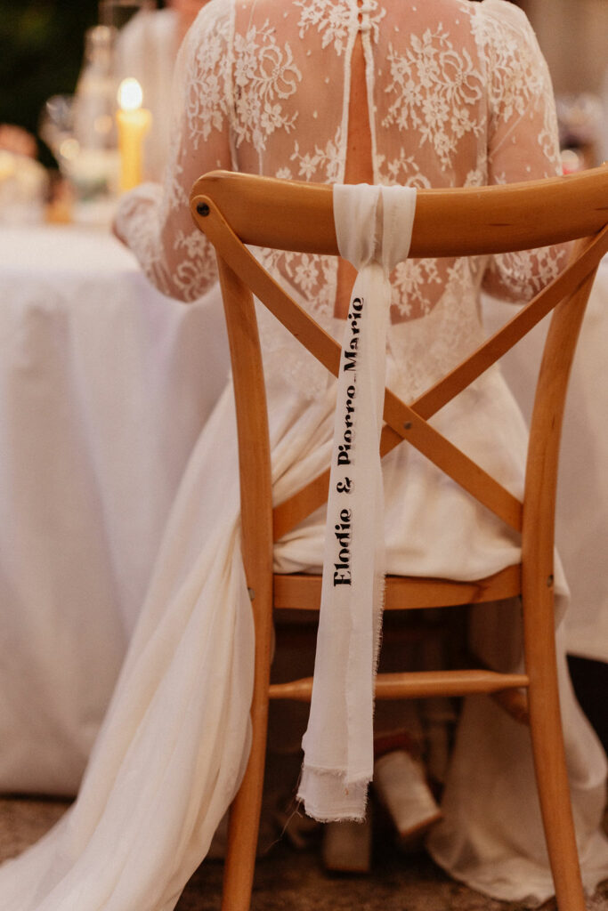 Élodie : Pour le lancer de bouquet, j’avais préparé en amont une petite chorégraphie avec les femmes non mariées, sur « Dancing Queen » d’ABBA (évidemment, puisque je suis une fan inconditionnelle du groupe, ahah !). L’ambiance était joyeuse, légère et pleine d’énergie.