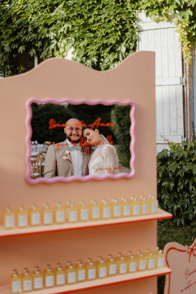 Par ailleurs, nos témoins nous avaient réservé quelques surprises. Ils avaient préparé une chanson interprétée par nos invités au moment du vin d’honneur, ainsi qu’un « Elle ou Lui » entre les plats. Ces petites attentions ont rendu la soirée encore plus chaleureuse, drôle et mémorable.
