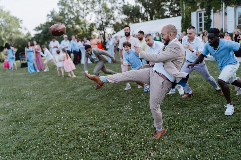 Pierre-Marie : De mon côté, j’ai organisé une course autour d’un ballon de rugby, avec, à la clé, une carafe de mon whisky préféré. Nos invités se sont vraiment pris au jeu : quelques coudes se sont frayé un passage… et deux ou trois costumes ont fini légèrement abîmés, mais le moment en valait largement la peine !