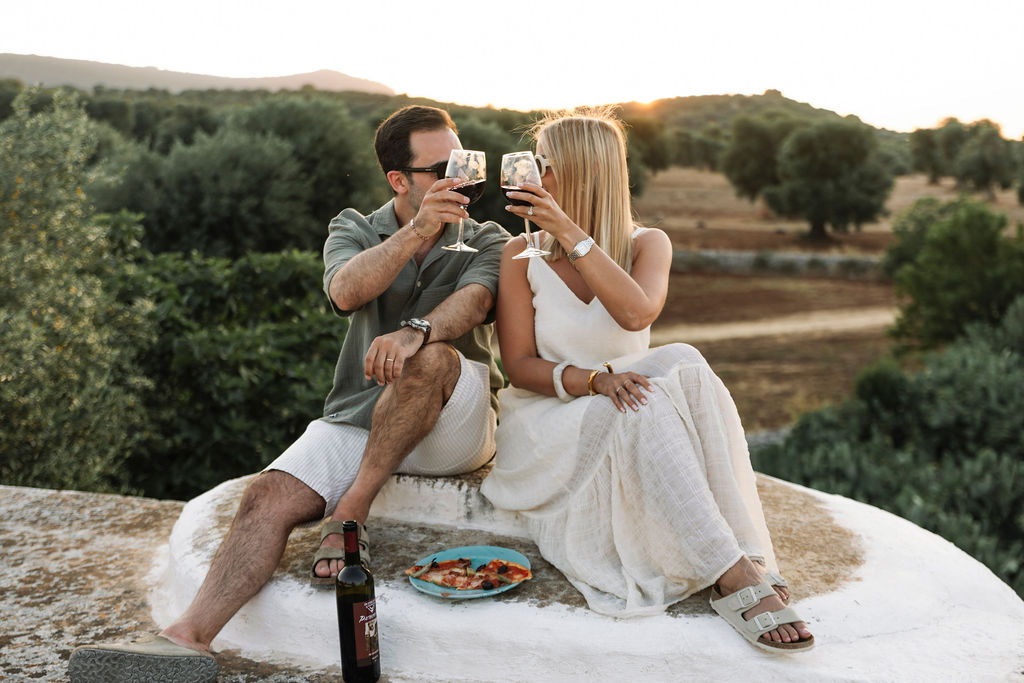 On était en juillet 2020, tout juste sortis du confinement. J’attaquais mon été rêvé, pendant que Nicolas comptait bien profiter de son célibat fraîchement retrouvé (spoiler : ça n’a pas duré longtemps !). Mais c’était sans compter sur Célia et Simon – nos meilleurs amis – qui ont alors décidé de jouer les entremetteurs lors d’une soirée bien arrosée. À la fin de la soirée, entre discussions et éclats de rire… visiblement, ça a bien fonctionné. Dès lors, on ne s’est plus quittés, jusqu’à amener nos proches en Italie pour célébrer notre amour.