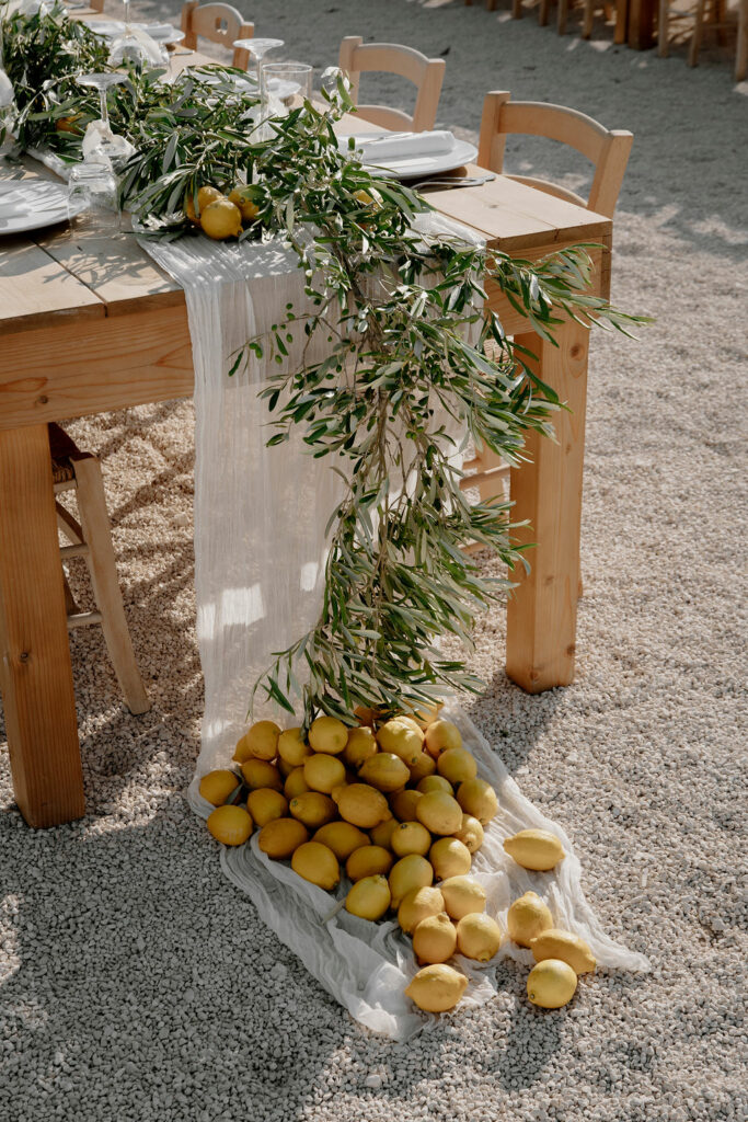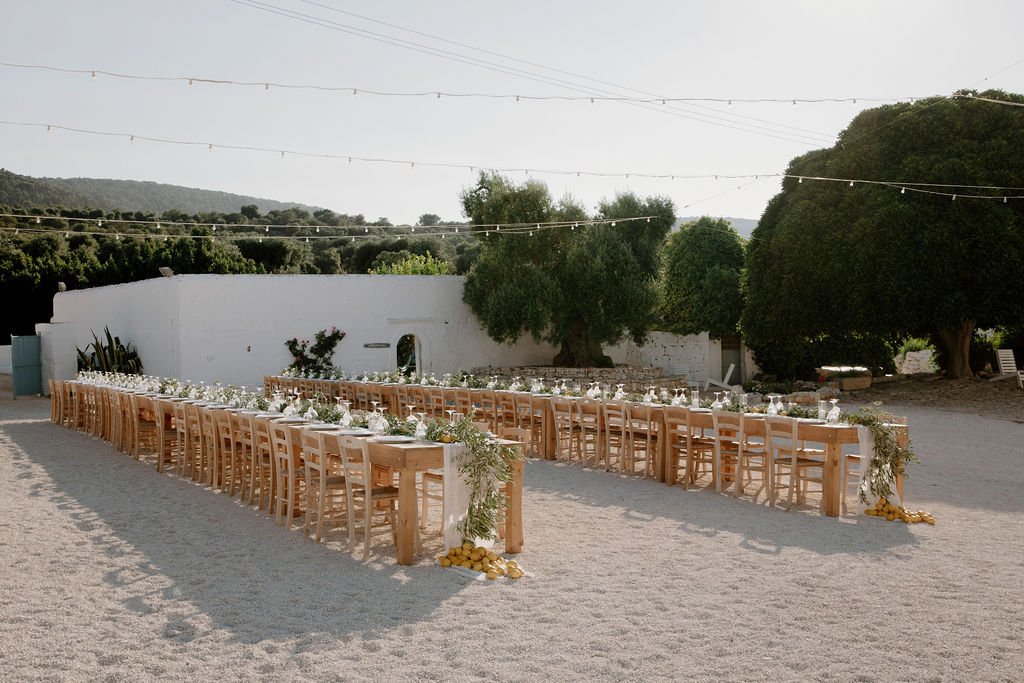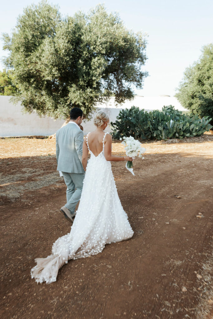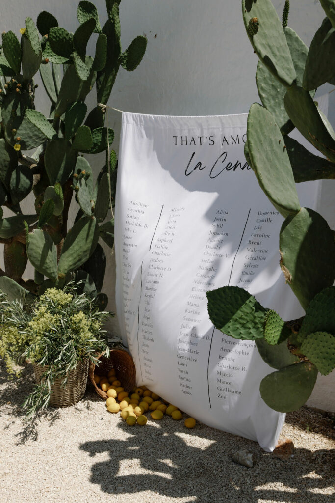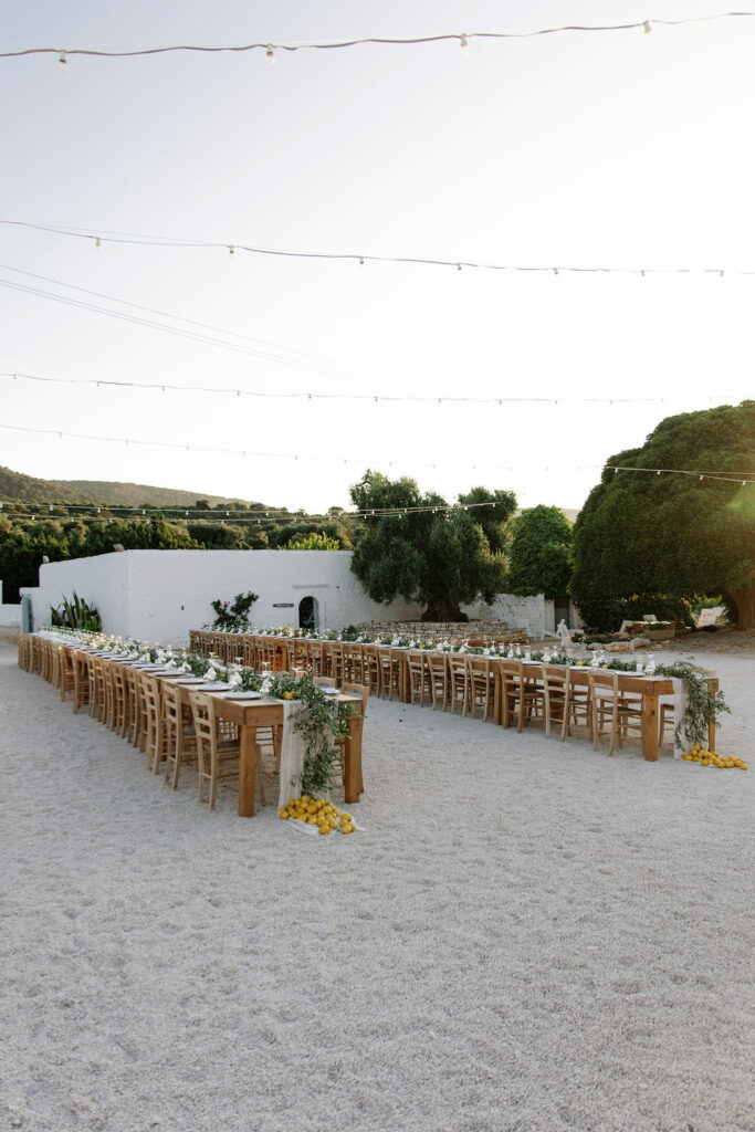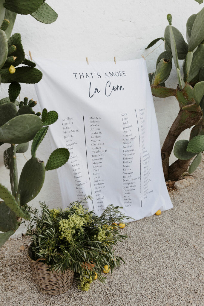 Concernant le style, je voulais un thème coloré, simple, épuré. Je n’avais pas spécifiquement de thème en tête, mais pour m’inspirer, j’ai cherché des tonnes d’idées sur Pinterest et Instagram. Ensuite, pour la recherche du lieu, nous en avons visité une petite dizaine – tous trouvés via Instagram. Finalement, nous sommes tombés amoureux de la Masseria Mozzone. Les propriétaires sont des personnes adorables, hyper attentionnés, très corrects niveau prix et surtout, ils avaient l’habitude de faire des mariages.