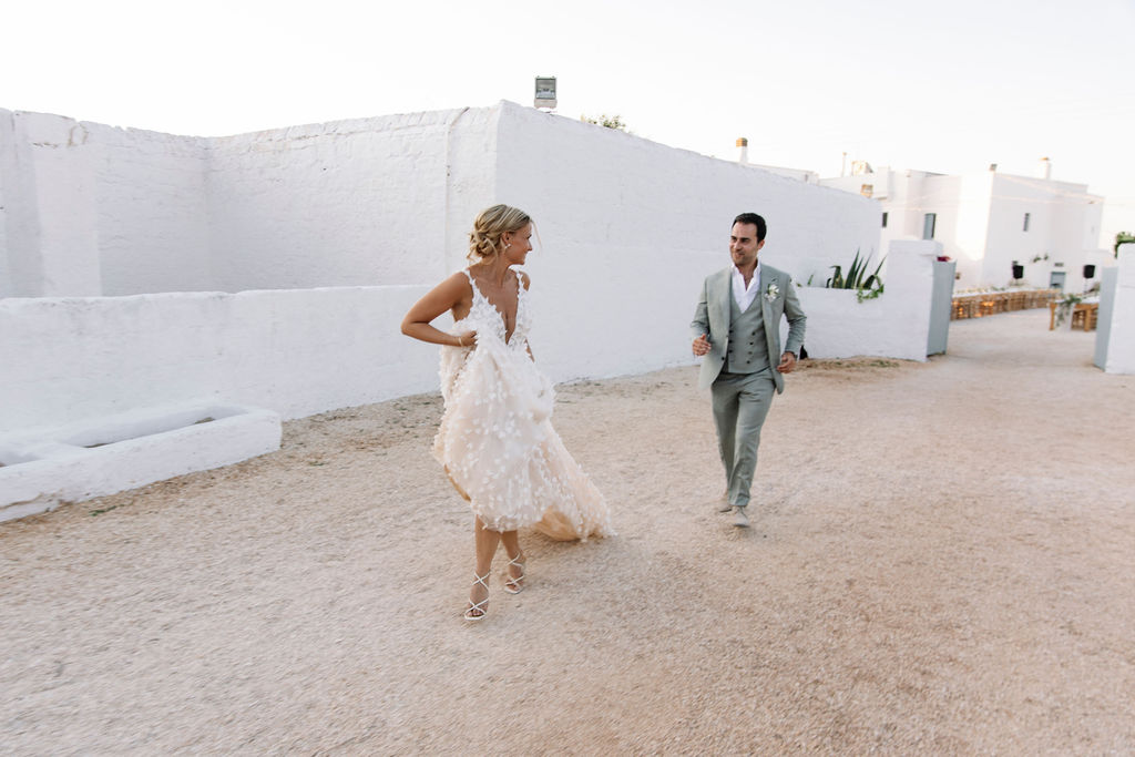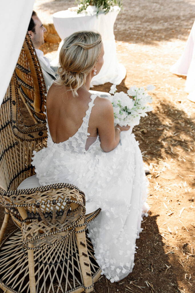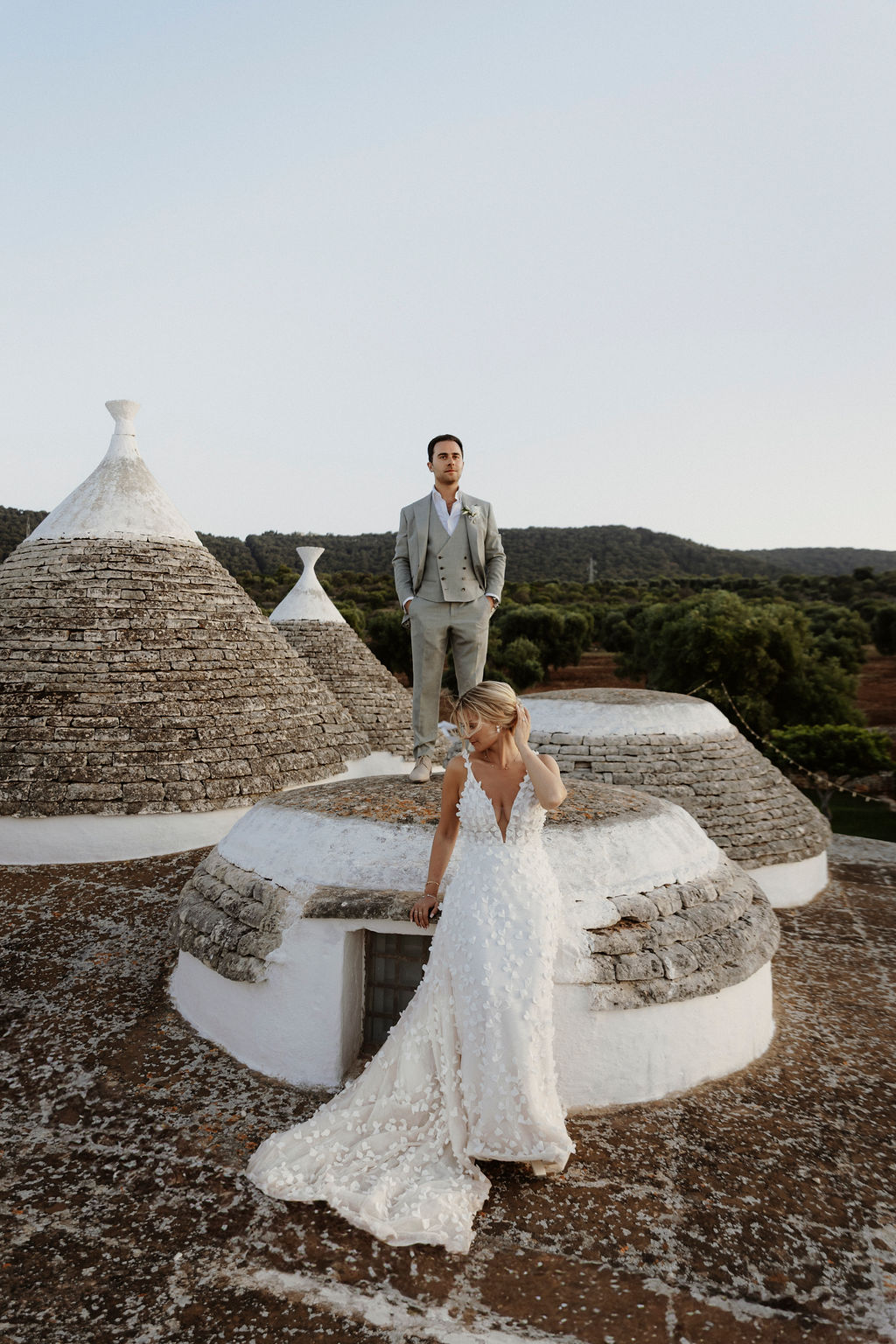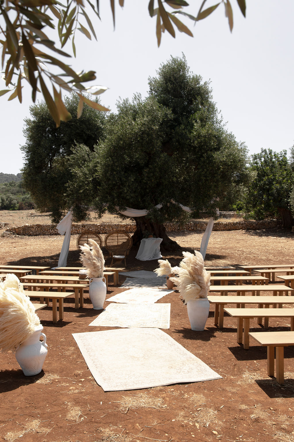 Concernant le style, je voulais un thème coloré, simple, épuré. Je n’avais pas spécifiquement de thème en tête, mais pour m’inspirer, j’ai cherché des tonnes d’idées sur Pinterest et Instagram. Ensuite, pour la recherche du lieu, nous en avons visité une petite dizaine – tous trouvés via Instagram. Finalement, nous sommes tombés amoureux de la Masseria Mozzone. Les propriétaires sont des personnes adorables, hyper attentionnés, très corrects niveau prix et surtout, ils avaient l’habitude de faire des mariages.