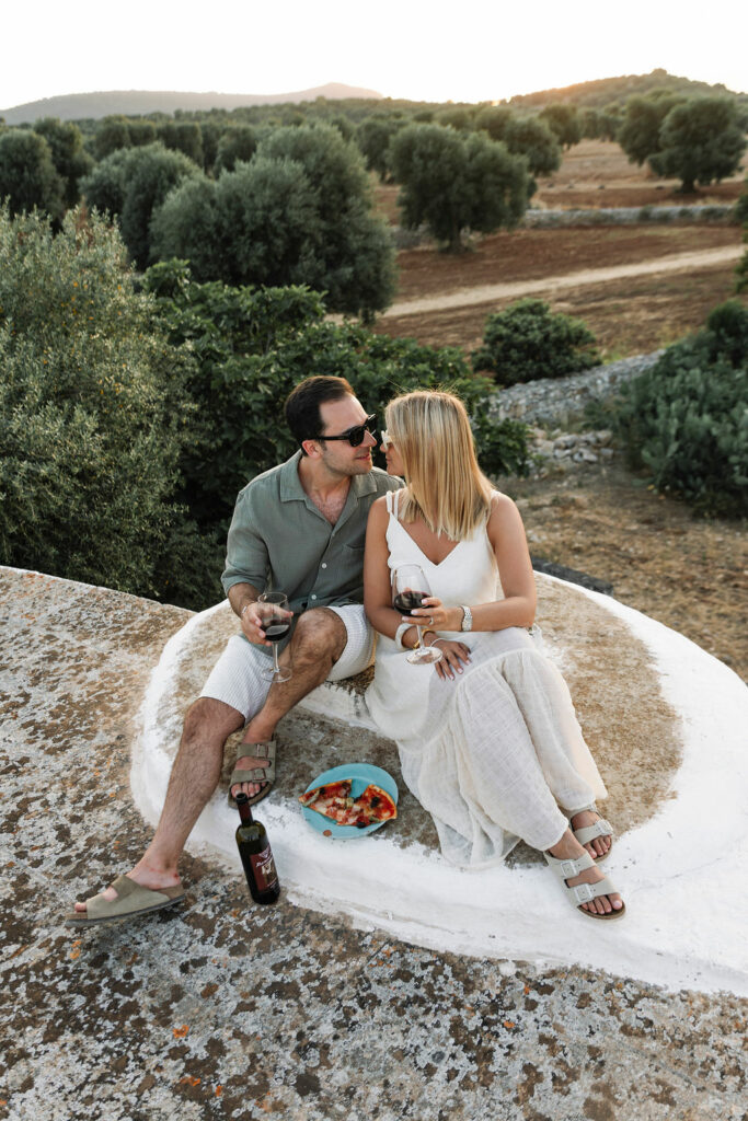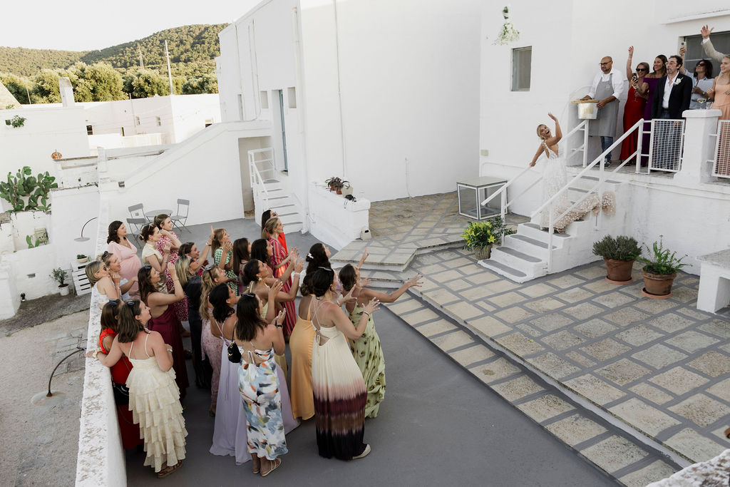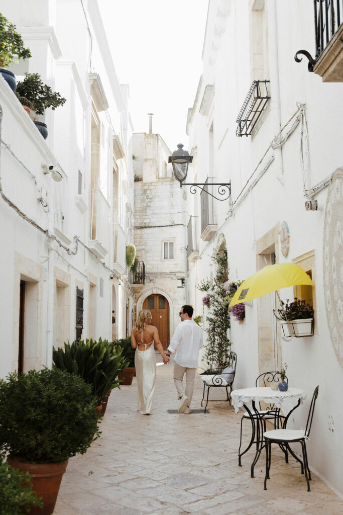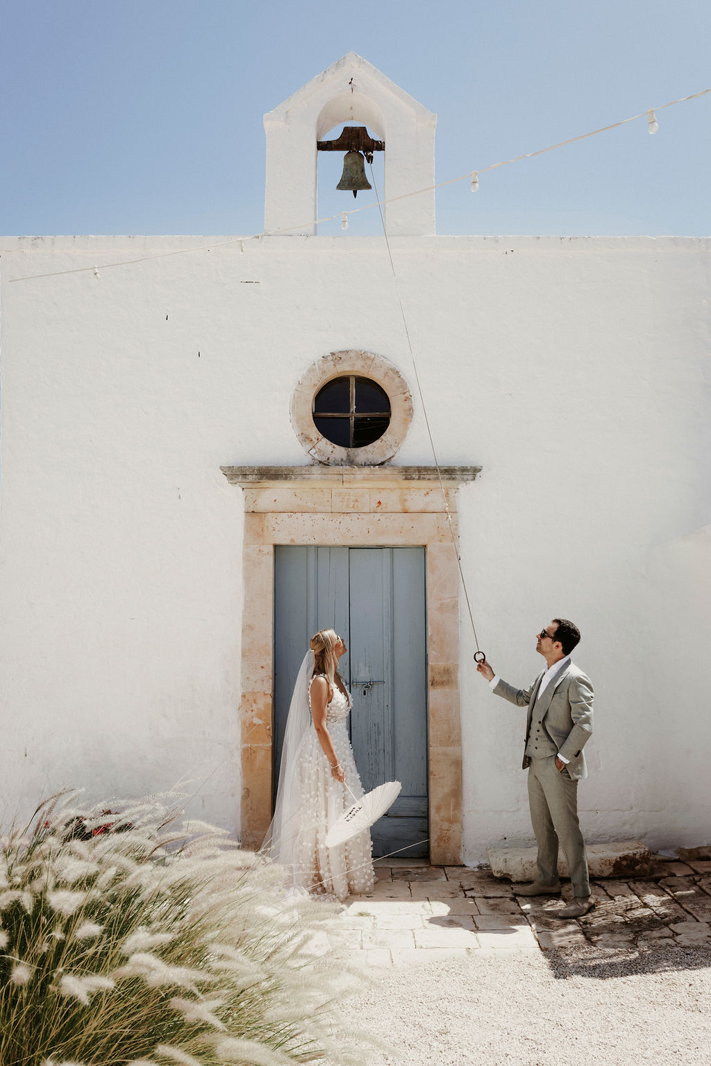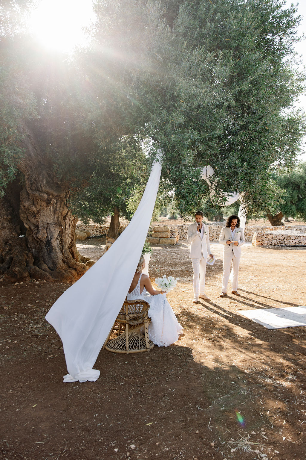 Concernant le style, je voulais un thème coloré, simple, épuré. Je n’avais pas spécifiquement de thème en tête, mais pour m’inspirer, j’ai cherché des tonnes d’idées sur Pinterest et Instagram. Ensuite, pour la recherche du lieu, nous en avons visité une petite dizaine – tous trouvés via Instagram. Finalement, nous sommes tombés amoureux de la Masseria Mozzone. Les propriétaires sont des personnes adorables, hyper attentionnés, très corrects niveau prix et surtout, ils avaient l’habitude de faire des mariages.