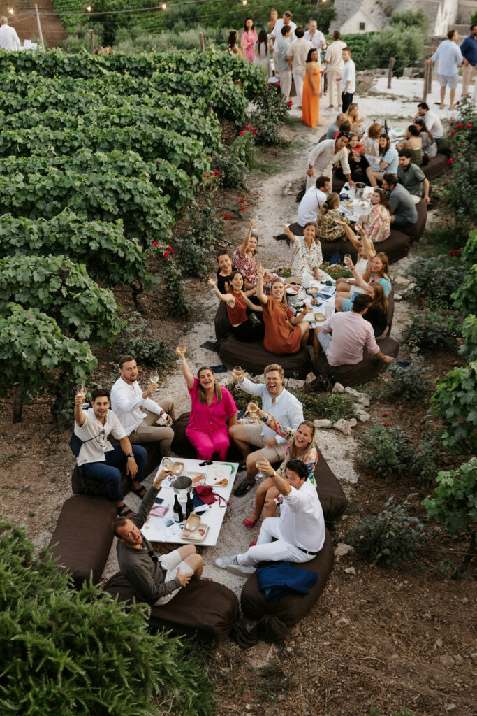 - D’abord, le vendredi : welcome dinner au coucher de soleil dans les vignes.