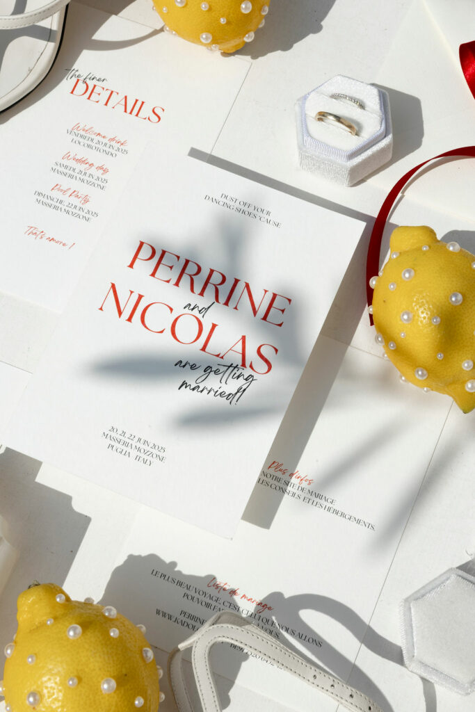 Je suis une grande fan d’organisation d’événements. J’ai d’ailleurs travaillé un peu dans le secteur avant la période Covid. C’est donc tout naturellement que nous avons décidé d’organiser le mariage civil en septembre 2024 dans le jardin de ma maman et d’y inviter les amis de nos parents ainsi que notre suite. En parallèle, nous avons choisi de faire la célébration en Italie avec nos amis proches, la famille et seulement une dizaine d’amis de nos parents.