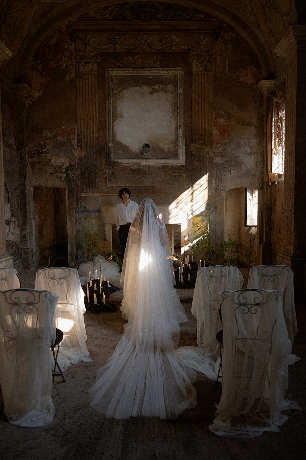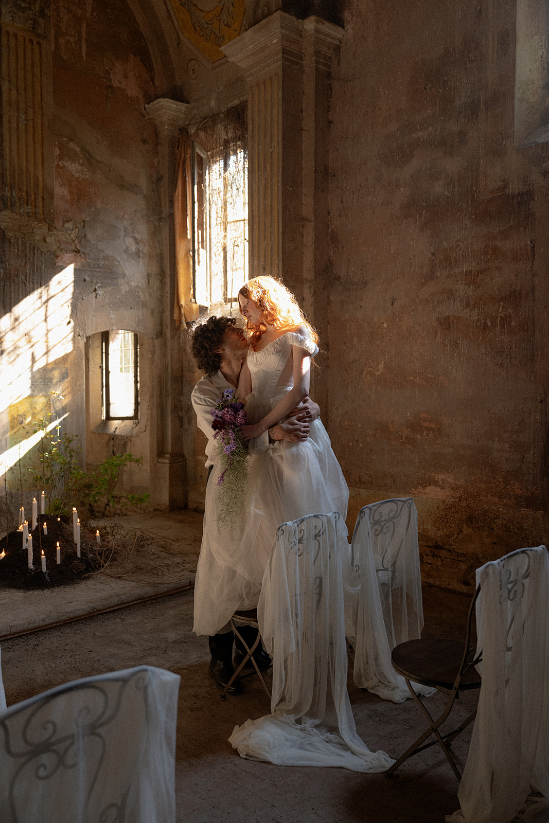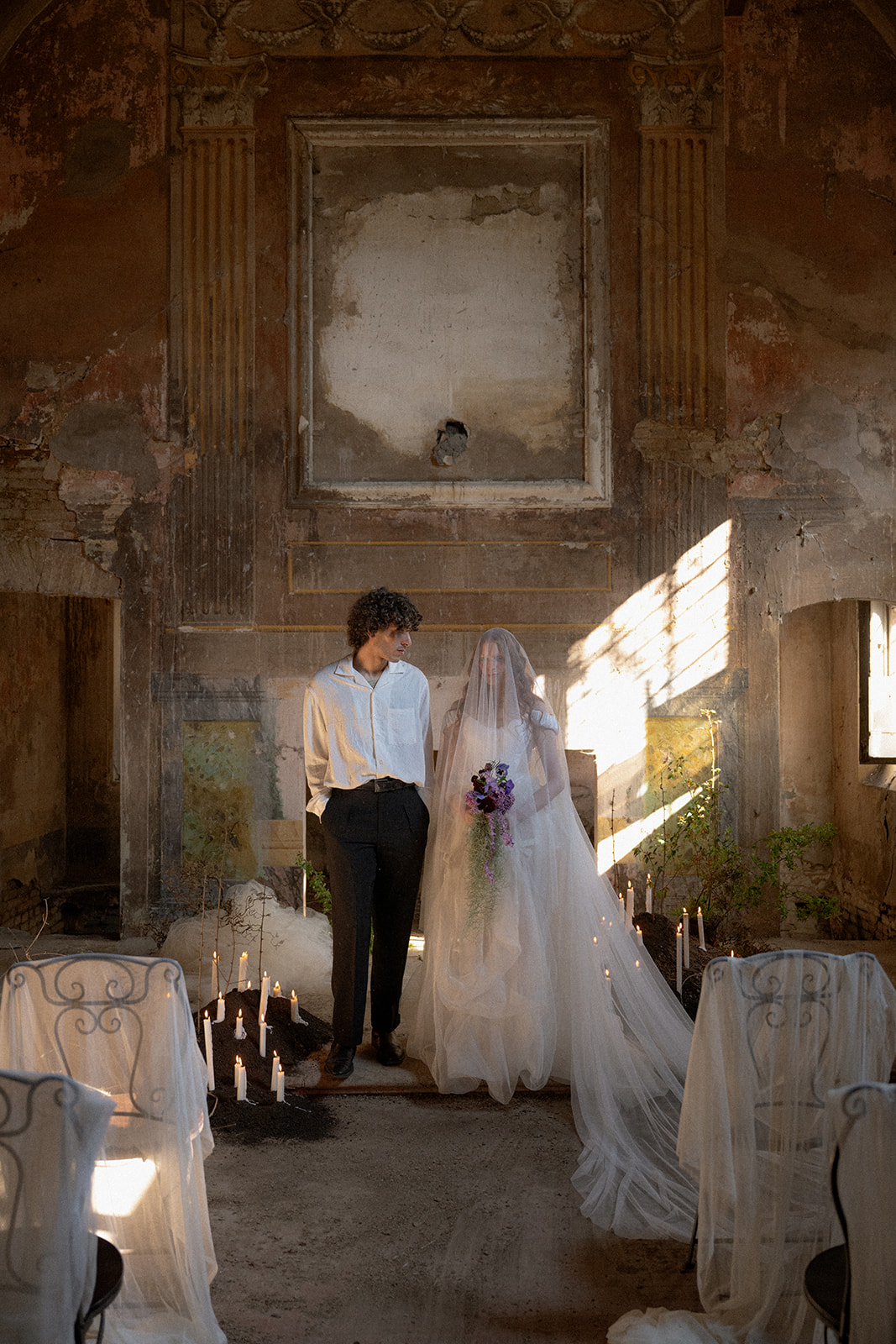 Ce mariage poétique au coeur des ruines s’adresse aux couples d’aujourd’hui. Ceux qui ne se reconnaissent plus dans des récits trop lisses. Cet éditorial célèbre celles et ceux qui voient la beauté dans les contrastes et qui souhaitent raconter leur histoire avec sincérité et caractère. Une vision du mariage qui embrasse tout ce qui rend l’amour vrai, nuancé et inoubliable.