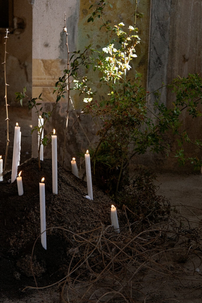 Mais des ronces épineuses viennent perturber cette harmonie apparente. Elles s’immiscent dans la scénographie comme un symbole fort, là où la tendresse se confronte à la résistance, et où la beauté ne va jamais sans aspérités. Se dessine alors une histoire d’amour faite de contrastes : intime mais tourmentée, romantique mais libre, profondément vivante.