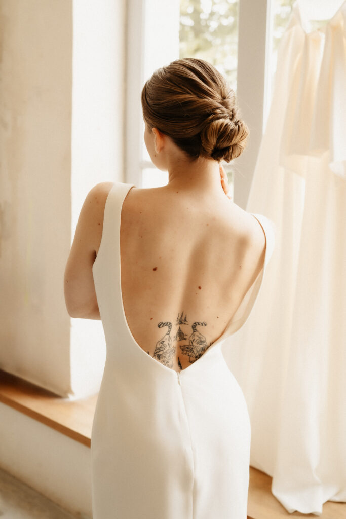 Au cœur de la Seine-et-Marne, à La Ferté-sous-Jouarre, Mélissa, wedding planner et fondatrice de l’agence un26septembre, a imaginé un shooting d’inspiration dans le décor singulier du Moulin de Mourette. Ancien moulin niché dans un écrin de verdure, le lieu séduit par son charme brut et son esprit atelier. Murs patinés par le temps, sols en béton, volumes authentiques : un cadre fort, presque minéral, que l’équipe a choisi d’adoucir grâce à une présence végétale omniprésente.